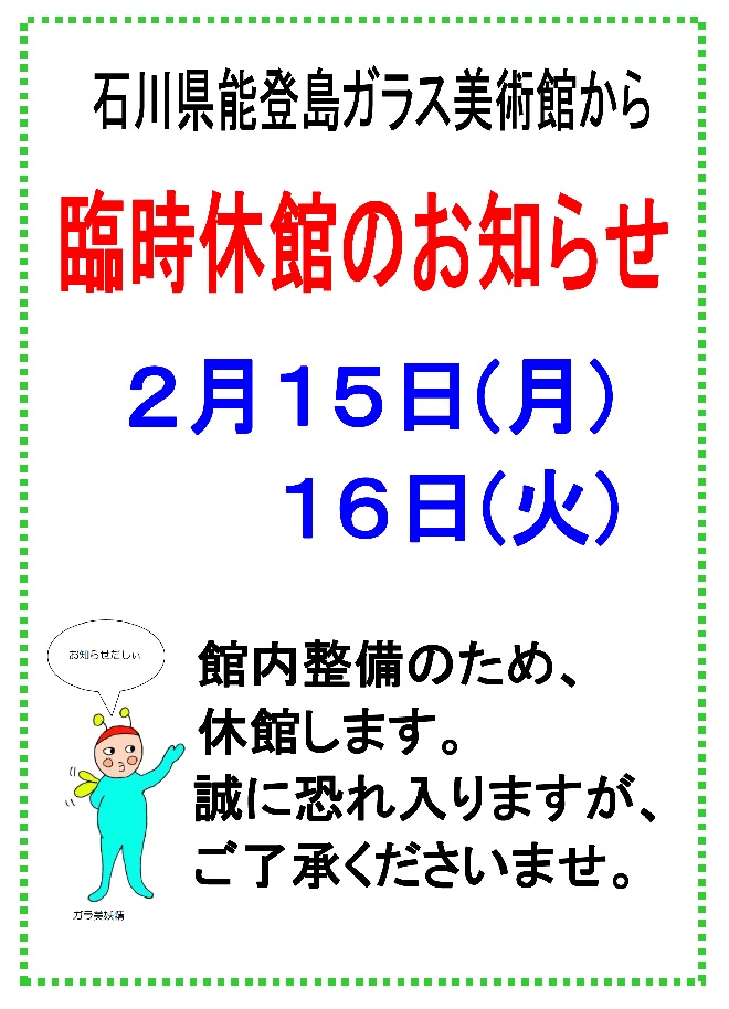 臨時休館(2,15・16)